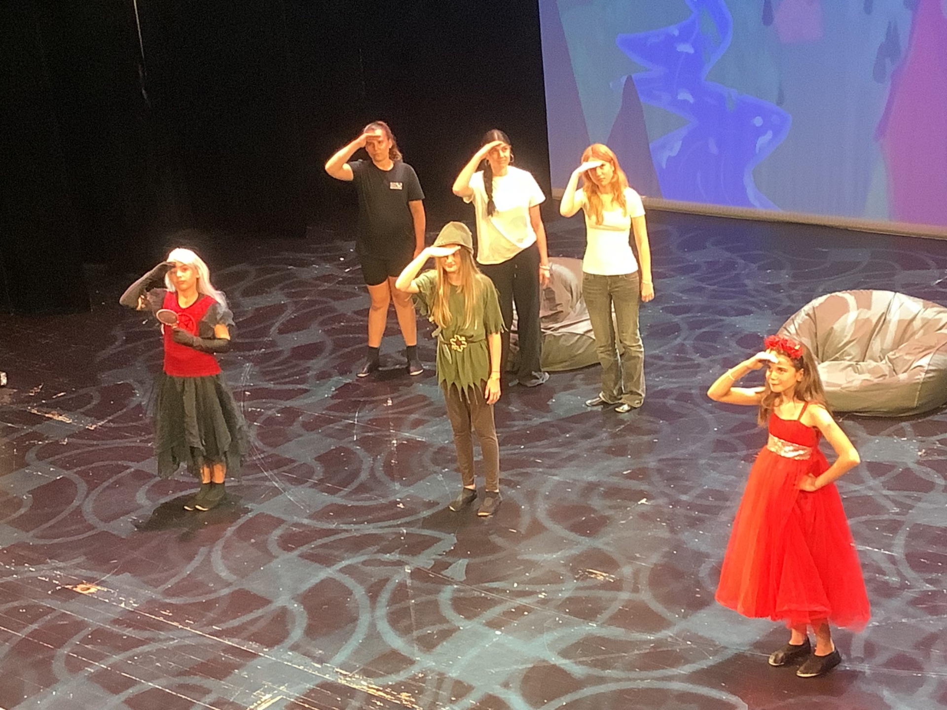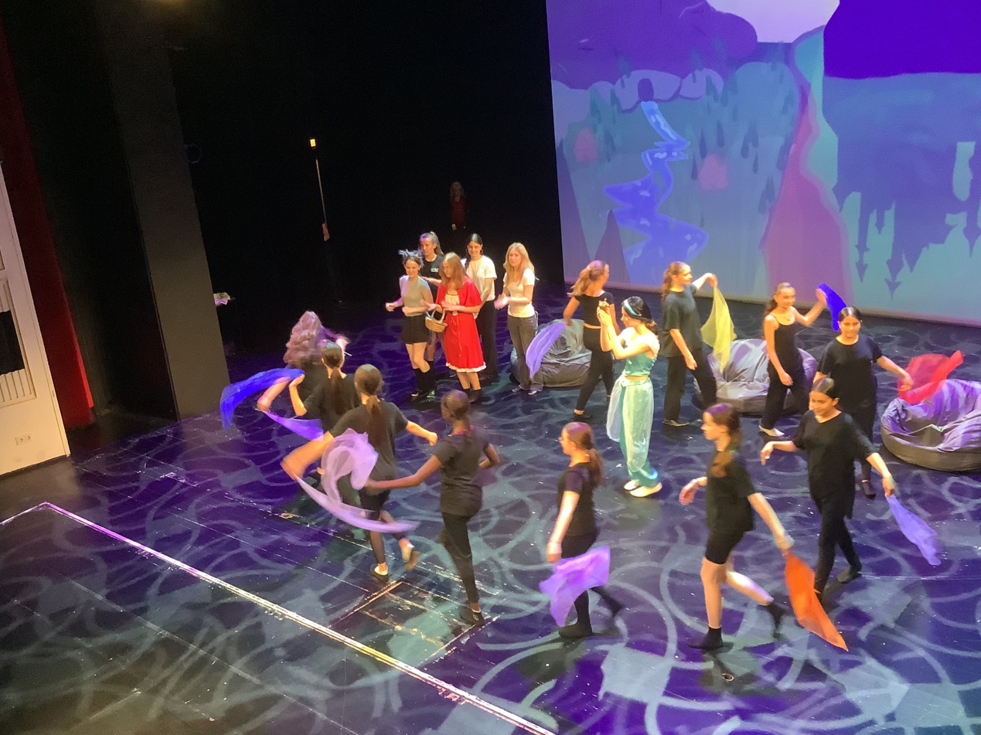 Alle Schauspielerinnen und Schauspieler können wirklich stolz auf ihre Leistung sein. Das habt ihr wirklich toll gemacht!!! Unterstützt wurde die Theater-AG von einigen bezaubernden Tänzerinnen aus den sechsten Klassen. Danke für die stimmungsvolle Untermalung!!! Danke sagen wir auch Frau Scheuber und der ehemaligen Klasse 7b für die Gestaltung der Hintergrundbilder.