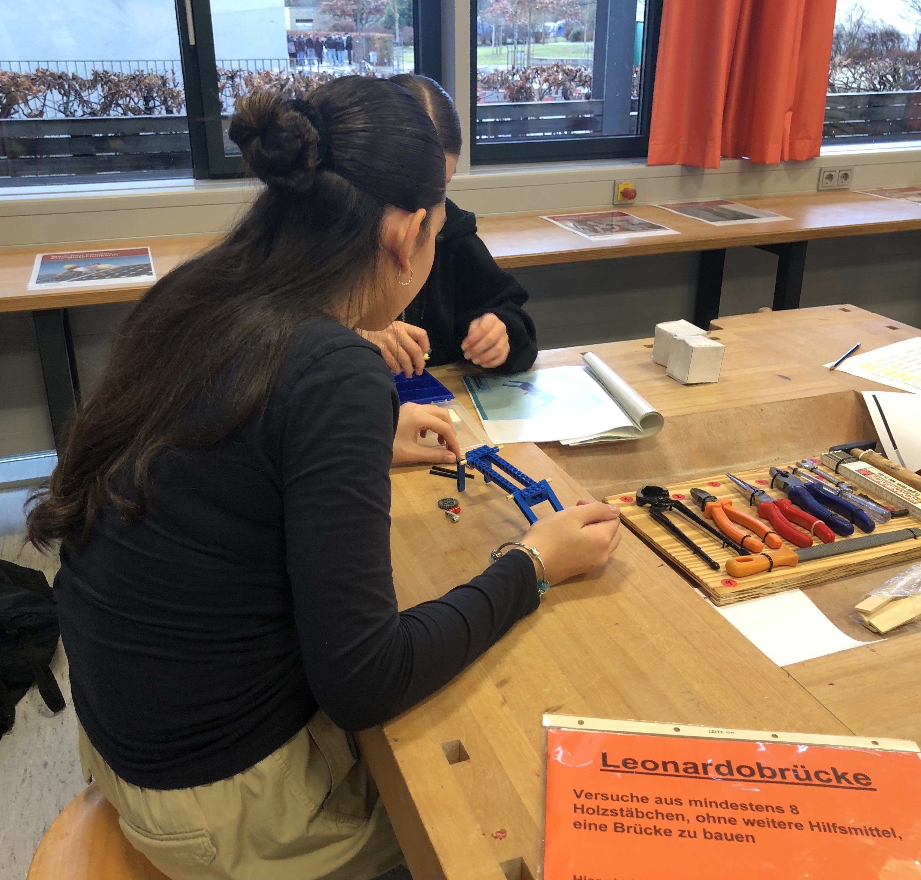 In einem Technik-Parcours konnten die Mädchen Berührungsängste zum technisch-naturwissenschaftlichen Bereich abbauen und sich in „Mädchen-untypischen“ Bereichen ausprobieren und ihre Erfahrungen reflektieren.