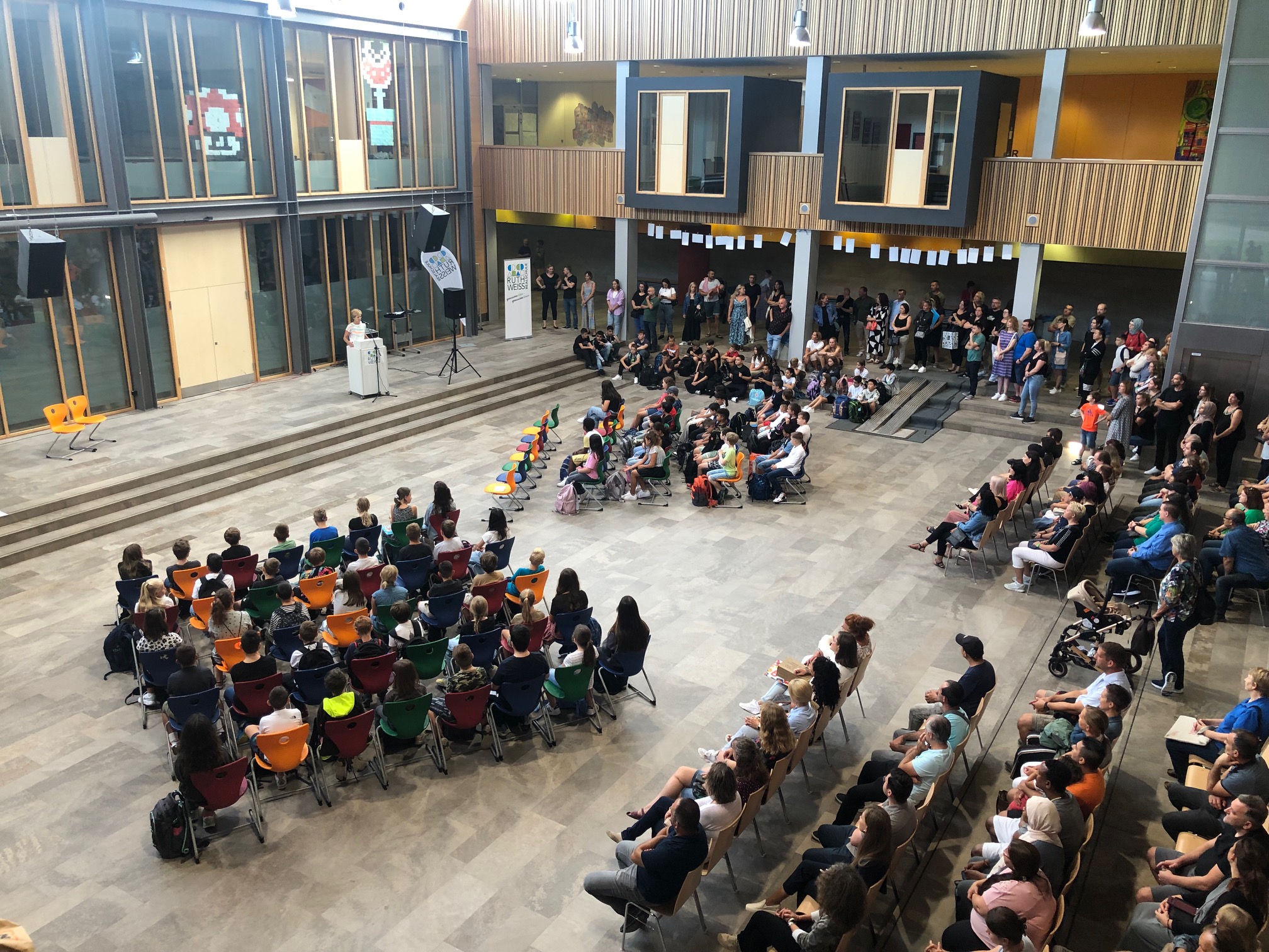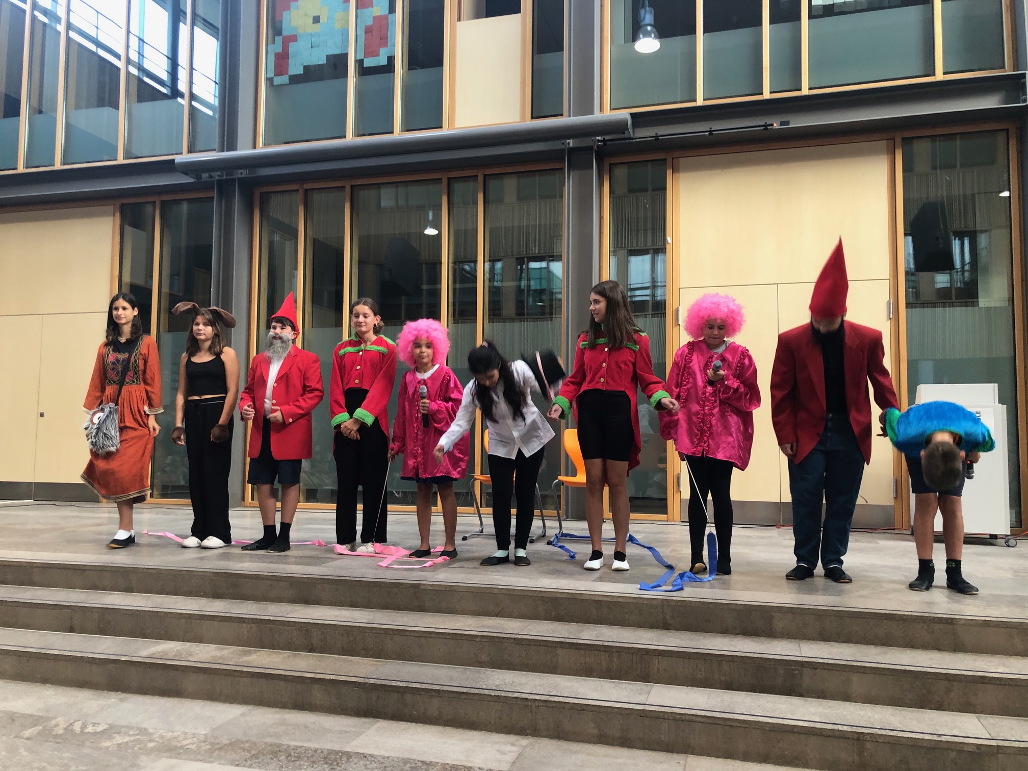 Unsere fünften Klassen wurden heute im Rahmen einer Willkommensfeier in der Aula von Schulleiterin Sandra Finnegan begrüßt. Im Anschluss daran trug die Theater-AG unter Leitung von Stefanie Bokr-Voß und Patricia Dicky ein kurzweiliges und tolles Theaterstück vor. Nach der gelungenen Theateraufführung lernten die Schülerinnen und Schüler ihre jeweiligen Klassenleitungen und Tutor/-innen für das kommende Schuljahr im Klassenverband kennen. Die Eltern konnten sich währenddessen auf dem Pausenhof mit Kaffee und Kuchen, wofür der Elternbeirat der RWR gesorgt hat, kennenlernen und austauschen. Ganz besonders hervorzuheben sind die Willkommensgeschenke für unsere fünften Klassen. Jede/-r Schüler/-in bekam eine Dokumentenmappe, eine Brotbox sowie ein Hausaufgabenheft. Ein besonderer Dank geht an Gerald Breunig, Präsident des Rotary Clubs Aschaffenburg, Sponsor der tollen und hochwertigen Brotboxen. Die Hausaufgabenhefte wurden von der Sparkasse Aschaffenburg-Alzenau zur Verfügung gestellt. Auch hierfür bedanken wir uns herzlich.